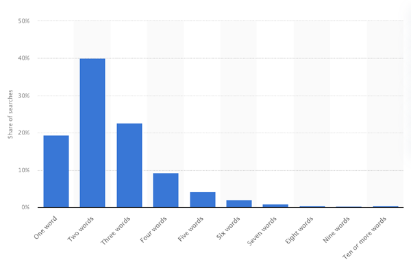 - Les requêtes composées de plus de 4 mots génèrent 10 fois moins de recherches que celles de 1 à 3 mots ;